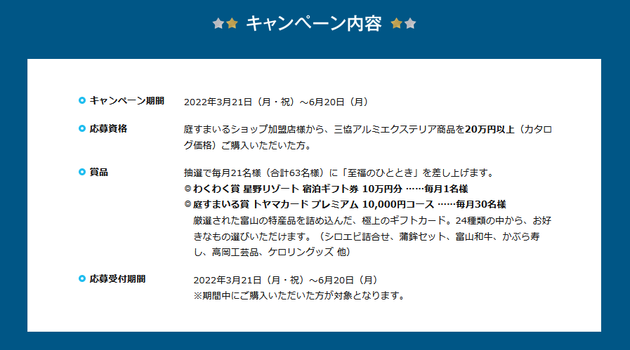 - 三協アルミ 庭すまいるショップ ~わくわくご購入キャンペーン~